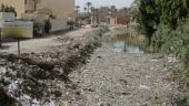 An irrigation canal clogged with garbage